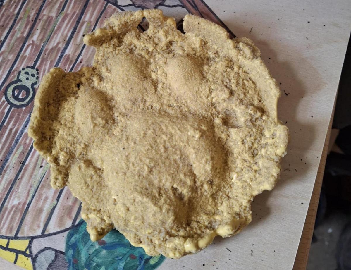 A snow leopard paw print cast using waste dental plaster